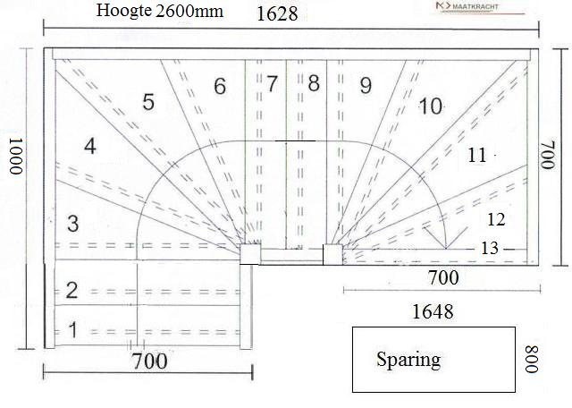 Hieronder vindt u de trap afmetingen van de trap hier boven
